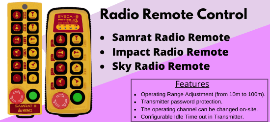 Featured Categories Control Gear for EOT Crane 54 Products + Shop Now Conductor bars 15 Products + Shop Now Radio Remote Control 16 Products + Shop Now Flameproof Products 18 Products + Shop Now