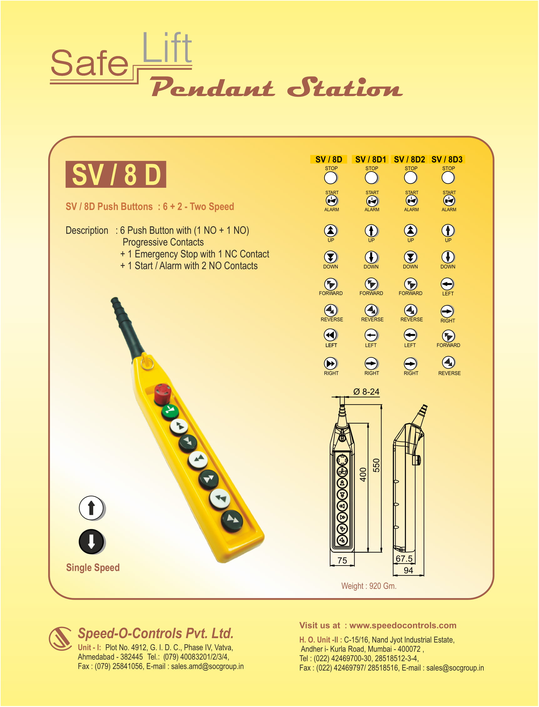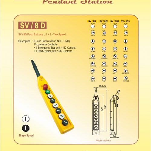 | Spares | Pendant, Emergency Stop, Start Alarm, Push Buttons Double Speed Black / White, Cable Holder, Contact Element Green 1no, Contact Element Red 1nc, Coupling Plate for Emergency Stop & Start, Coupling Plate with Interlock Top/Bottom, Cable Clamp Holder, Cable Sleeve Buttons Range, Pendant Housing, Selector Switch 2 Way, Selector Switch 3 Way, Double Step |