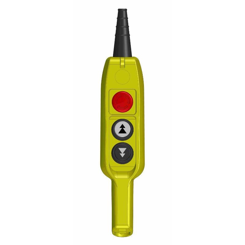 Two Double-step push-button thermoplastic pendant handheld with cable sleeve