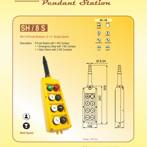 | Spares | Pendant, Emergency Stop, Start Alarm, Push Buttons Single Speed Black / White, Cable Holder, Contact Element Green 1no, Contact Element Red 1nc, Coupling Plate for Emergency Stop & Start, Coupling Plate with Interlock Top/Bottom, Cable Clamp Holder, Cable Sleeve Buttons Range, Pendant Housing, Selector Switch 2 Way, Selector Switch 3 Way |