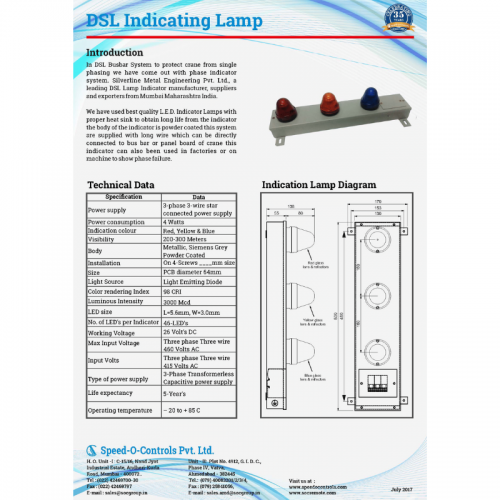 In DSL Busbar System to protect crane from single phasing, we have come out with a phase indicator system. Silverline Metal Engineering Pvt. Ltd., a leading DSL Lamp Indicator manufacturer, suppliers and exporters from Mumbai Maharashtra India.