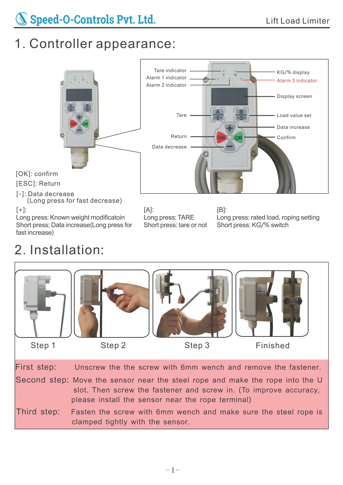 Wire Rope Load Cell With Mounted Controller (Single Rope)