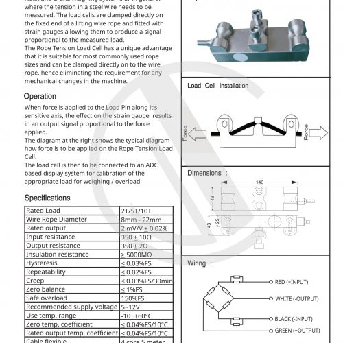 Load Cell Wire Rope is used in applications where a dead end is not available for load measurement Does not use up crane Available Capacity from 1T to headspace 5T.