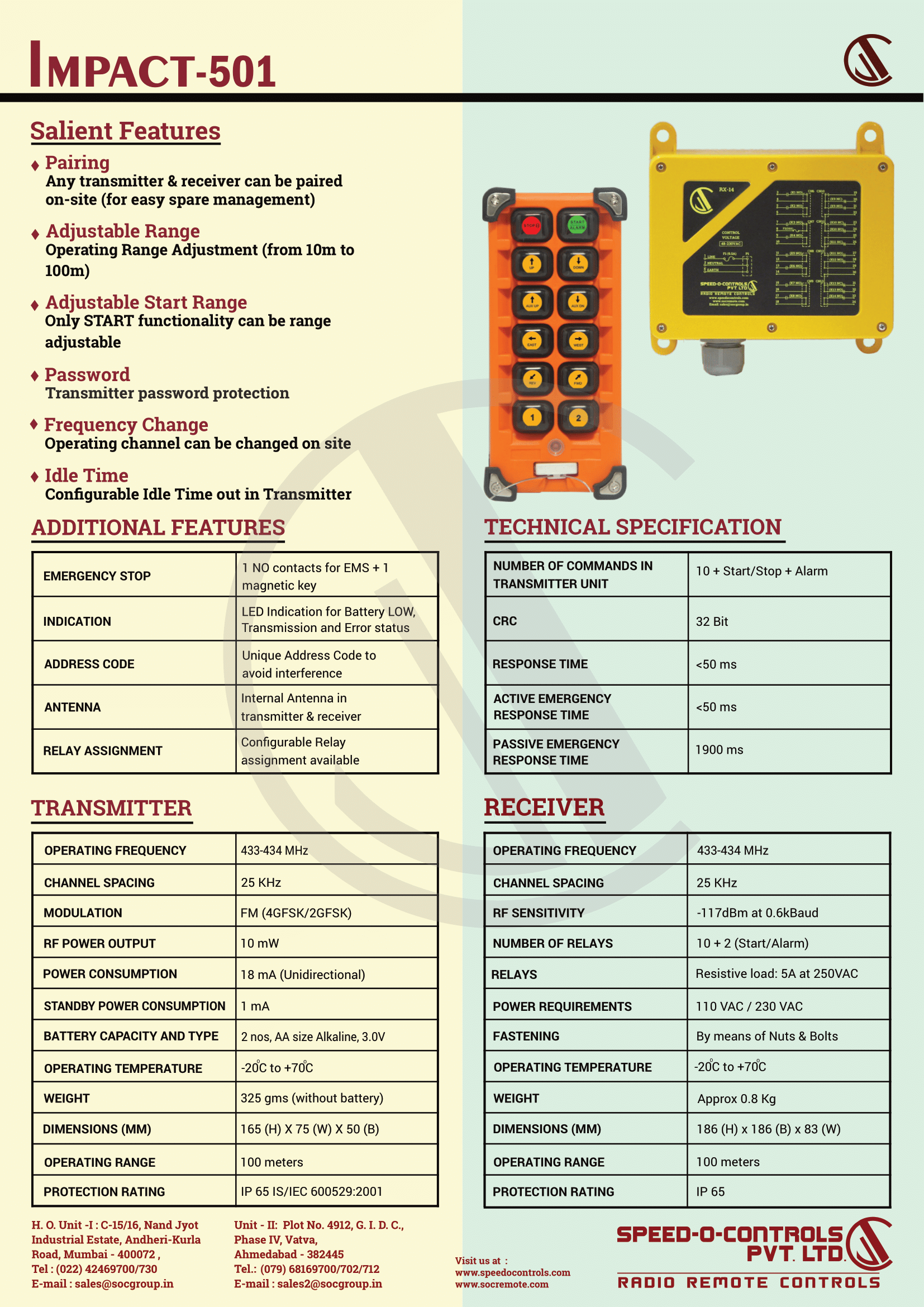 Impact 501 Radio Remote Control System Specifications.
