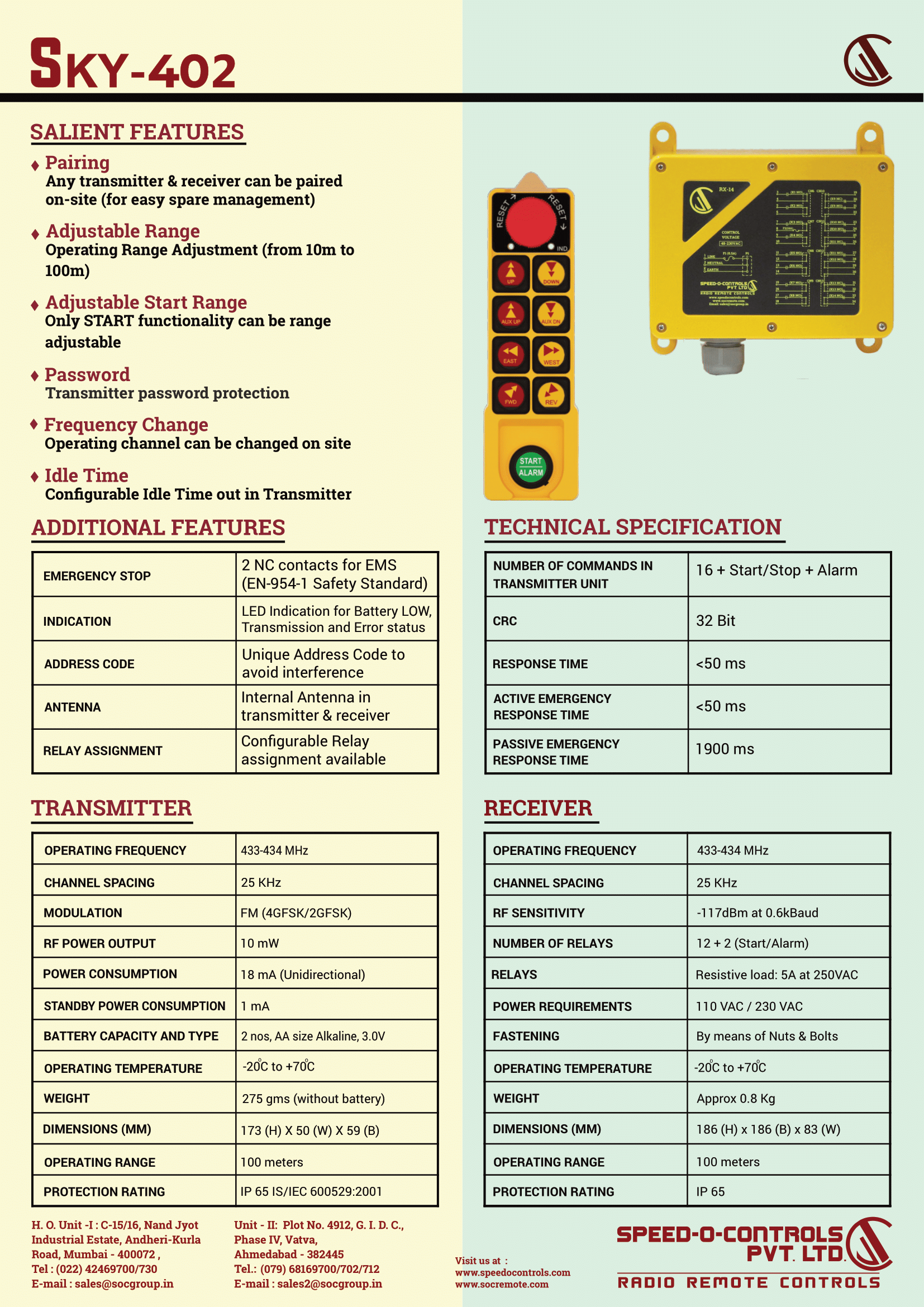 Sky 402 Single Radio Remote Control System Specifications.